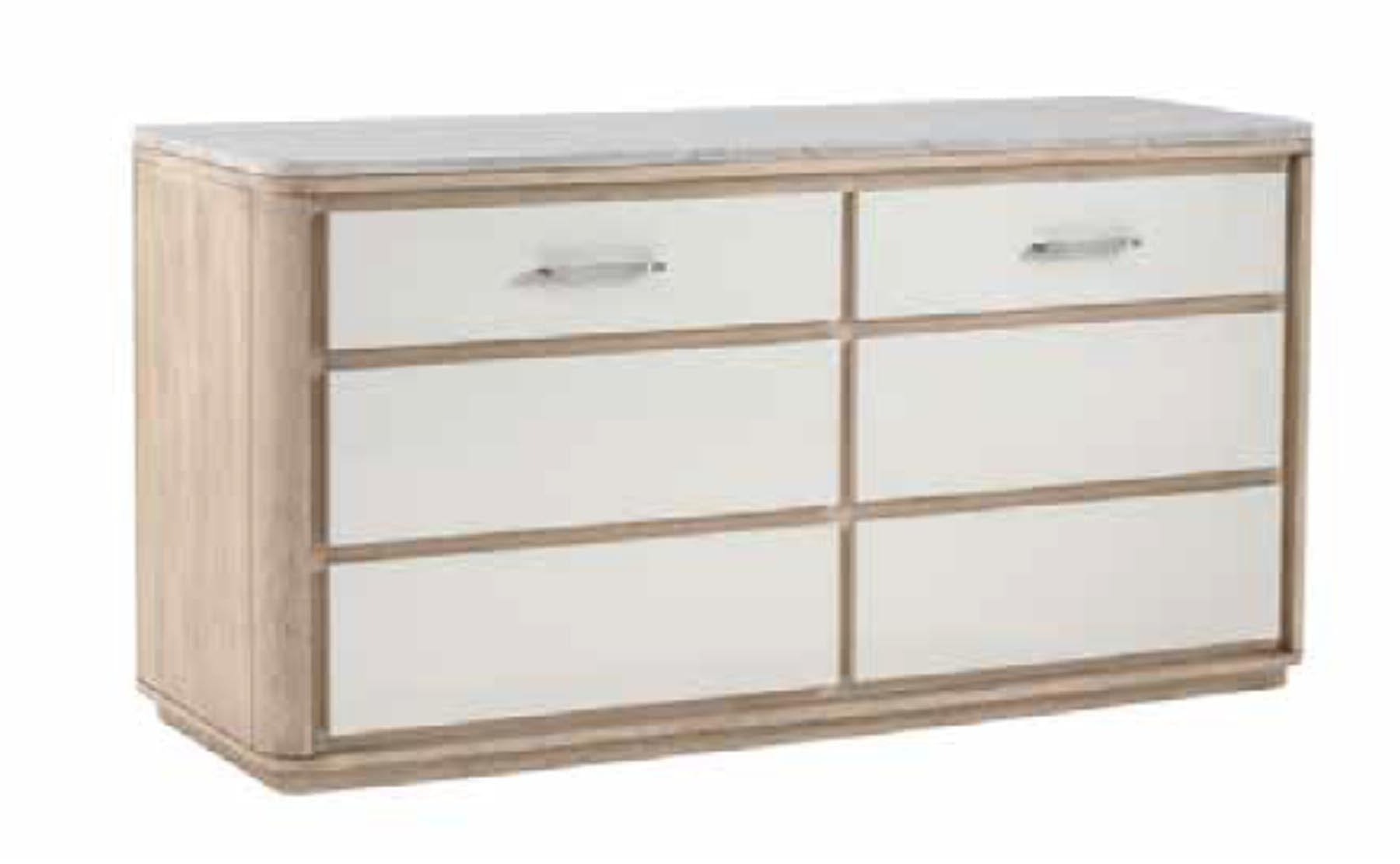 Die Adriana Hoyos Kommode ist ein zeitloses Stück mit sanften Kurven, kombiniert mit modernen Details. Die vorderen Schubladen können in Holz oder Hochglanz ausgeführt werden. Die Steinplatte verleiht ihr Frische und hohe Funktionalität aufgrund ihrer großen Widerstandsfähigkeit. Sie verfügt über zwei kleinere Schubladen und vier große.