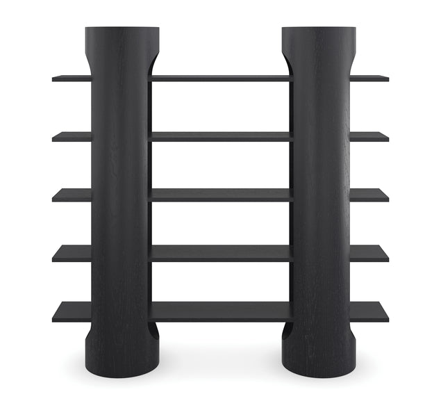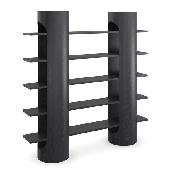 Diese stilvolle Bücherwand bietet nicht nur praktischen Stauraum, sondern auch die Möglichkeit, dem Raum Charakter und Persönlichkeit zu verleihen. Klare, architektonische Linien treffen auf sanft abgerundete Kanten, während das matte Schwarz für einen eleganten Kontrast und eine spannende Textur sorgt. Mit fünf großzügigen Regalböden bietet sie reichlich Platz für Bücher, Dekorationen und alltägliche Essentials – ein echtes Statement-Stück für jedes Interieur.