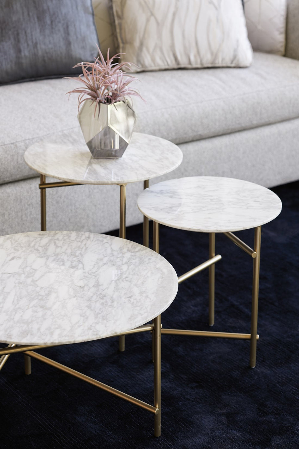 Integrieren Sie ein exklusives Element in Ihren Wohnbereich mit diesem runden Akzenttisch. Die Kombination aus edlen Materialien, wie einer Carcasta-Marmorplatte und einem in Lucent Bronze beschichteten Metallgestell, verleiht ihm eine besondere Note. Dieser multifunktionale Tisch eignet sich ideal für verschiedene Wohnraumgestaltungen. Seine moderne Basis mit eckigen Stützen bietet einen zeitgemäßen Ansatz für rustikale Designs. In Kombination mit dem passenden M101-419-403 Couchtisch und dem M101-419-417 Beistelltisch können vielfältige Kombinationen geschaffen werden. Beschichteter Metallsockel mit Finish in Lucent Bronze Metallic. Caracasta-Marmorplatte. Paar mit M101-419-403 Cocktailtisch und M101-419-417 Beistelltisch.