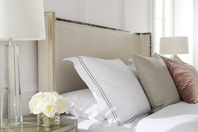 'Dream Big' bed - Enveloped in elegant charisma You feel stylishly protected in the elegant embrace of the 'Dream Big' bed. The gently curved headboard and graceful profile give this upholstered bed its timeless appeal, while tortoiseshell acrylic inserts add a touch of sophistication. Soft silver paint highlights the exquisite wood detailing and draws the eye to the contemporary pedestal base. Its striking silhouette creates a real eye-catcher and instant credibility when it comes to interior design. Upholstered headboard, footboard and sideboard, headboard with tortoiseshell acrylic inlays, soft silver wood trim, pedestal base.