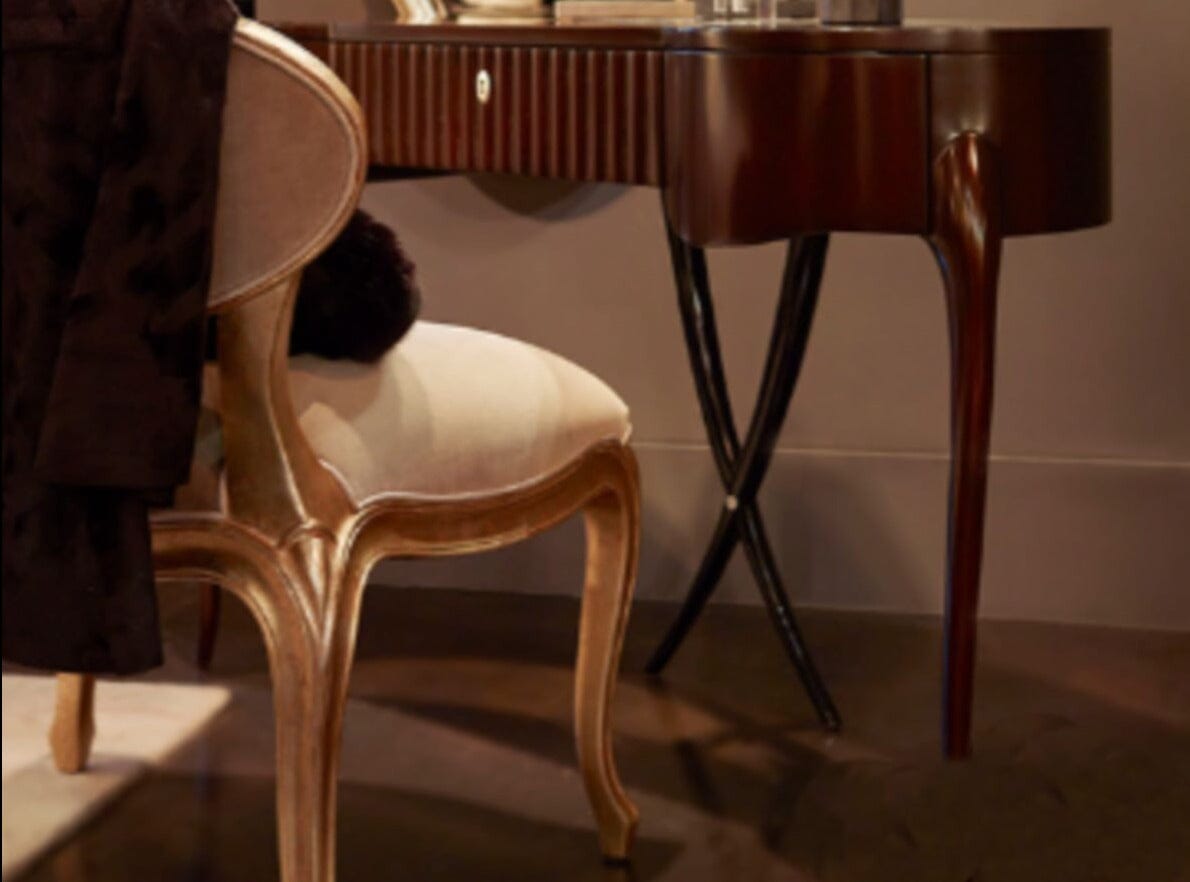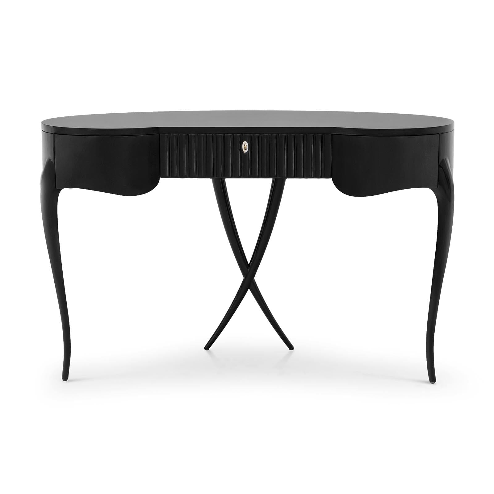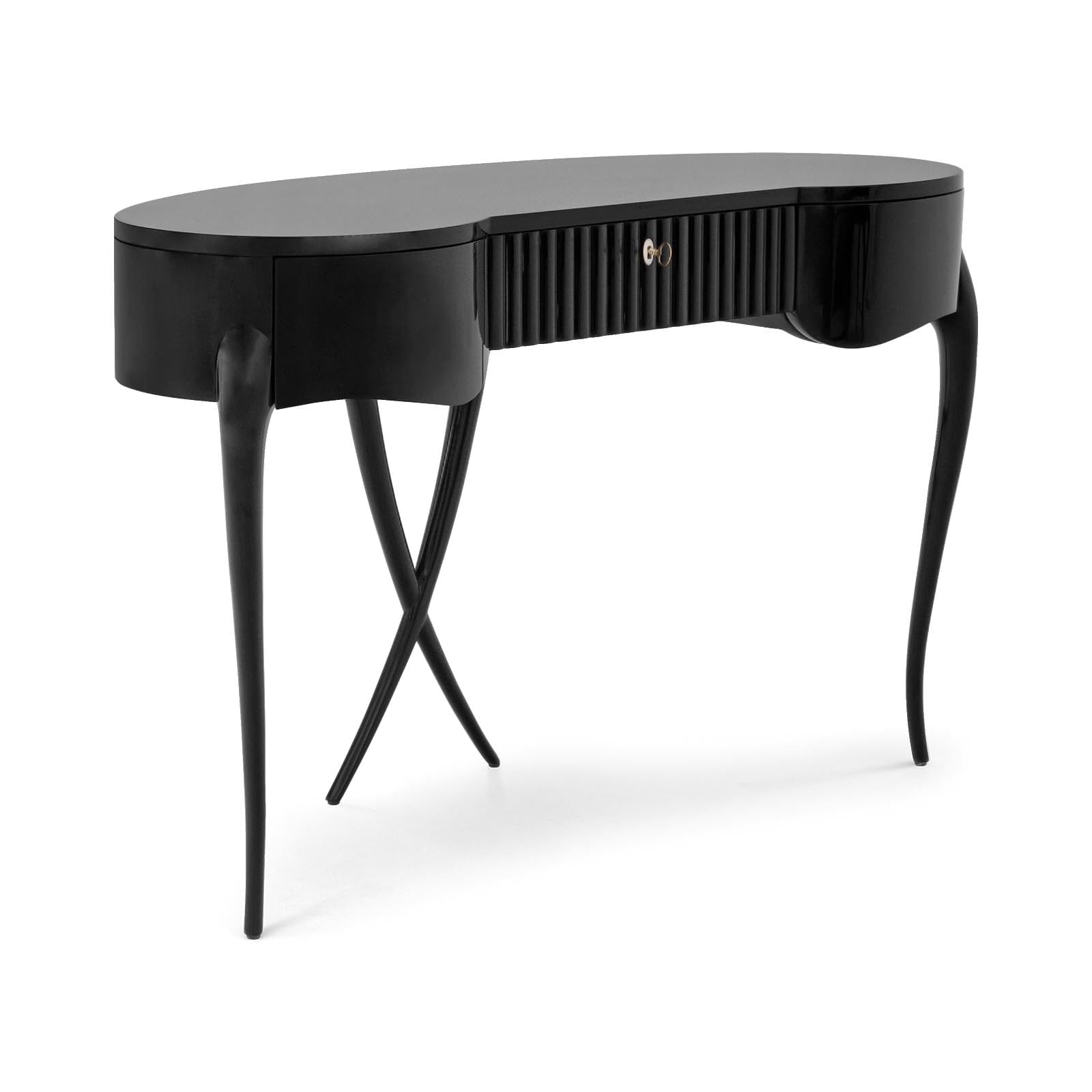 Christopher's signature Chris Cross pattern is the perfect counterpart to this desk with a curved back and elegant grooved details. Ideal in a corner or as a free-standing piece of furniture. Also available as a dressing table with mirror: (76-0300).