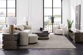 Perfekt dimensioniert als Beistelltisch, macht das architektonische, versetzte Stapeln gemischter Materialien diesen Tisch unvergesslich. Der Oberrahmen zeigt Koto-Holz in der Farbe Dry Martini, das mit rauchigem bronziertem Glas eingefasst ist. Die Tischstufen bestehen aus Koto in Dry Martini mit einer neutralen metallischen Oberfläche. Zwei sanft schließende Schubladen sind mit bronzierten Spiegeln versehen. Bietet offenen Stauraum zur Präsentation von Büchern und Objekten. Die Sockelbasis ist mit neutraler Metallicfarbe beschichtet. Versteckte Rollen sind enthalten für einfachen Transport. Oberrahmen in Dry Martini mit eingelassenem Frosted Smoked Bronze-Glas. Gehäuse in Dry Martini. Zwei Schubladen mit Vorderseiten aus Frosted Bronze-Glas und sanften Schließmechanismen. Innenausstattung in passender Farbe.